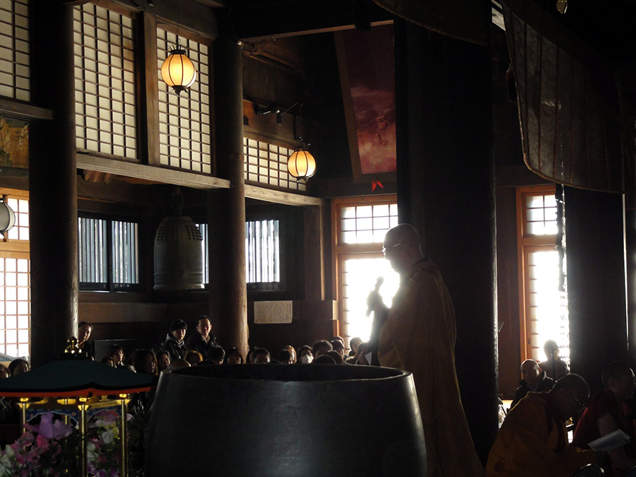 その後、参加者の皆さまと共に、まずチベット訳による「般若心経」と「七句祈願文」、そして「四大の守り神への祈願文」などを3遍読誦いたしました。次に、漢訳すなわち日本人に親しい「般若心経」等を3遍読誦し、チベットと日本人の深い友情の誠を尽くして、犠牲者の御魂の安らかならんことを、そして被災地の方々の心の平安を祈念いたしました。